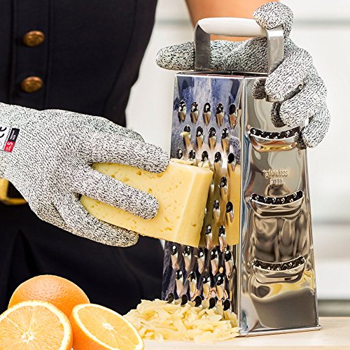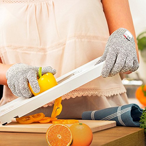 - PROTECTIVE SAFETY FEELING: These safety gloves, will give you an exhilarating care free disposition when you do risky tasks around the home or at work. Using these with a grater, knife or mandolin will speed up your preparation time for sure whilst avoid scrapes. In no time you will stop worrying about cutting yourself and safely finish food contact tasks at hand quickly. You'll no longer worry or concentrate on getting hand injuries.