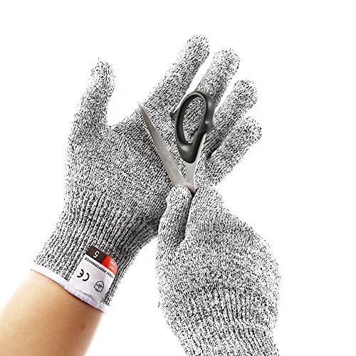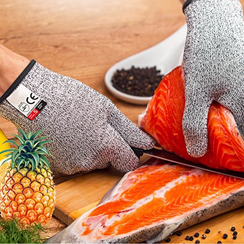 - NO MORE SCRAPES, CUTS & NICKS:Eliminate stress in a busy kitchen with hungry waiting mouths. Take some of the stress away and rest assured that you'll never have dangerous mistakes again with the added comfort and reassurance that this level 6 cut pesistant gloves bring. Made from Dyneema, these food grade cooking gloves are breathable, ultra light weight, highly durable with the added comfort of wrist protection.
