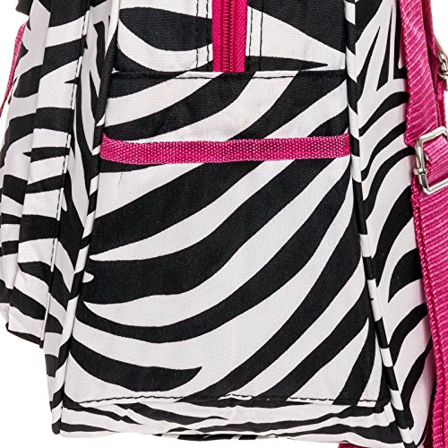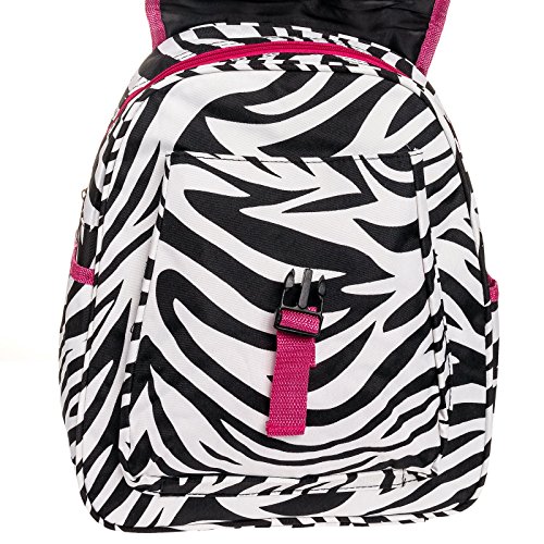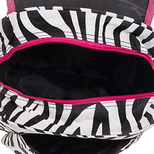 Womens 13" Zebra Print School Travel Backpack Bag w/ Pink Trim (Black & White)