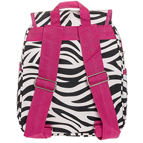 Go right to the head of the class in style with this Zebra Print Backpack from Silverhooks! Perfect for transporting all of your academic needs, it features a roomy main compartment with a zipper closure to keep all your papers and books safe. Utilize the additional slip pocket with a buckle closure or 2 water bottle slots for extra storage options. Dual adjustable carrying straps provide you with a supportive & comfortable fit. Measures 13" x 12" x 6.5".