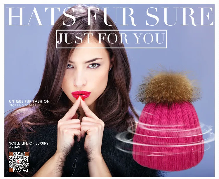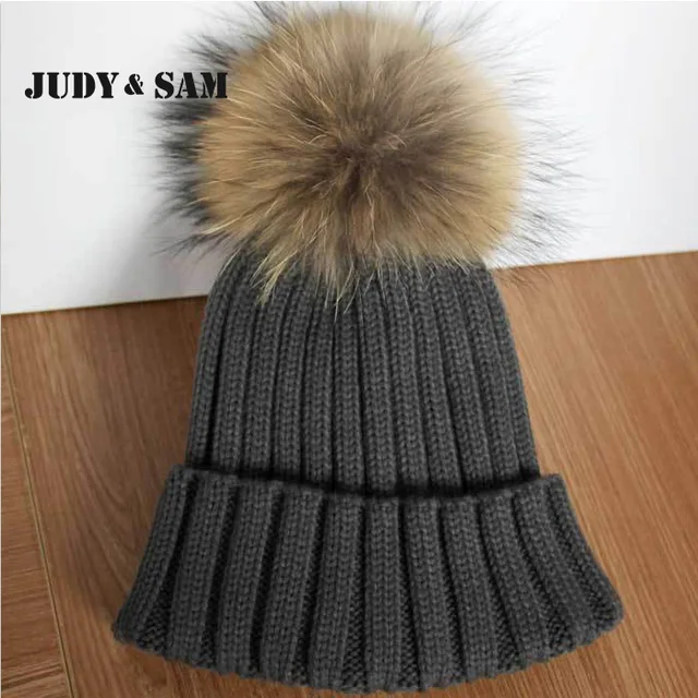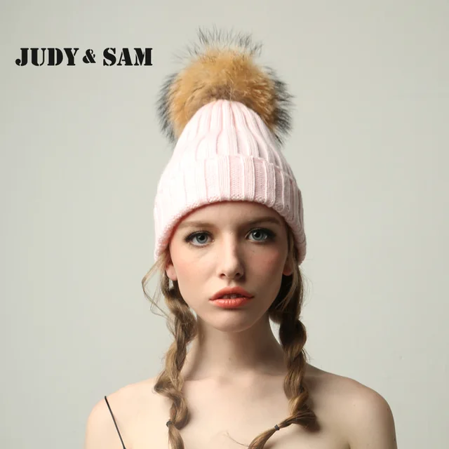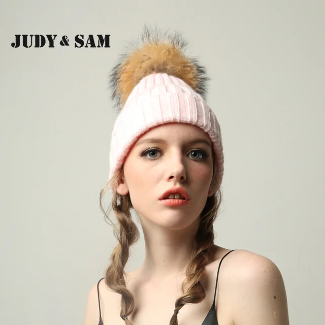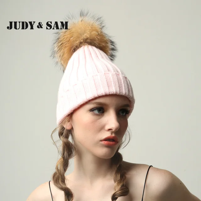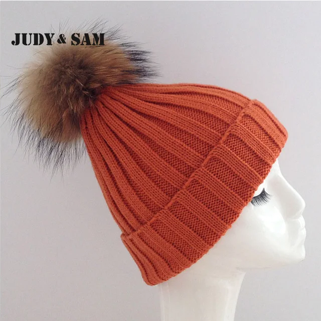 | [해외]JSFUR 브랜드 여성 겨울 모자 도매 사용자 정의 로고 캡 큰 너구리 모피 치어 리딩 힙합 패션 Kintted 따뜻한 망 모자 |