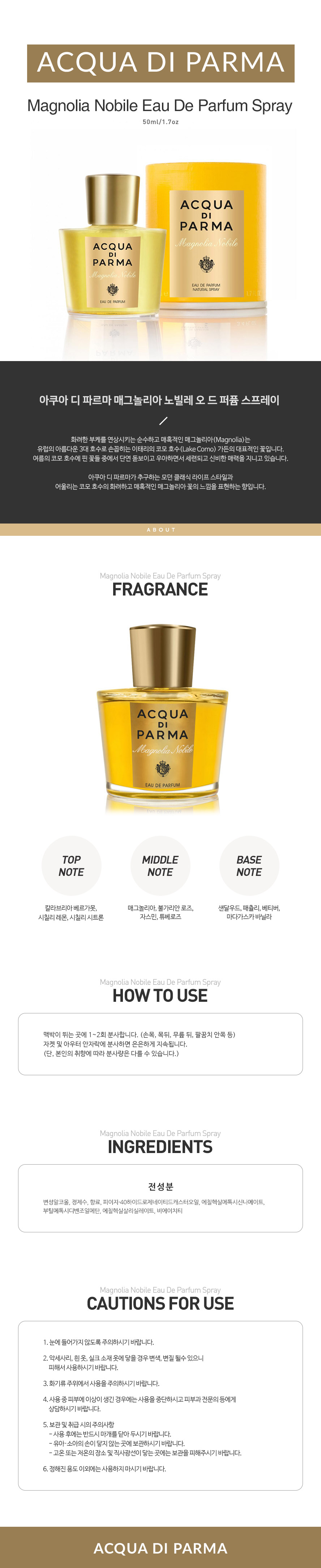 • 탑노트는 버가못 레몬 시트론 그린 액센트 미들 노트는 마그놀리아 자스민 로즈 투버로즈 베이스 노트는 우디 향이 믹스되어 있다