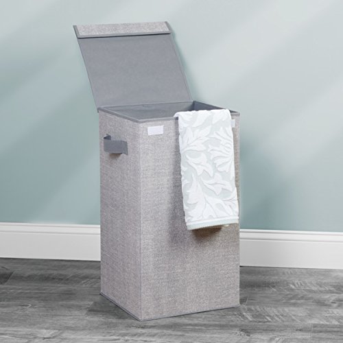 mDesign Folding Laundry Clothes Hamper with Handles and Lid - Gray