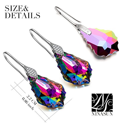 -. Title : NINASUN 925 Sterling Silver Drop Dangle Earrings "Dark Phantom" Hypoallergenic Fine Jewelry for Women, Crystals from SWAROVSKI
