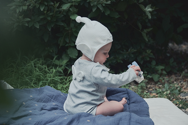 화이트 골지 원단을 사용한 깨끗한 스타일의 모자입니다. 입체날개로 포인트를 주었습니다.