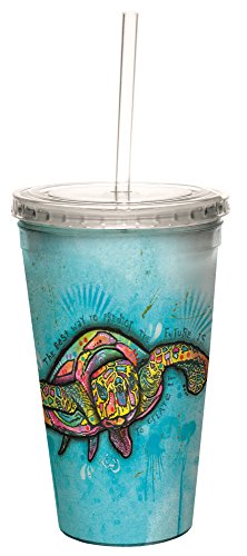 Tree-Free Greetings 98190 Dean Russo Future Tortoise Double-Walled Cool Cup with Reusable Straw, 16-Ounce