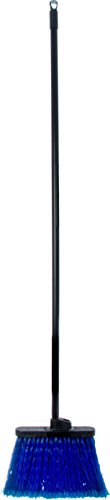 Two handle holes; one angled, one upright^Flagged blue filament sweeps fine debris^Use lobby brooms with dust pans (sold separately) for continuous cleaning of convention centers, malls, and theme parks^56-inches overall length^Bristle measures 7-inches trim by 13-inches width