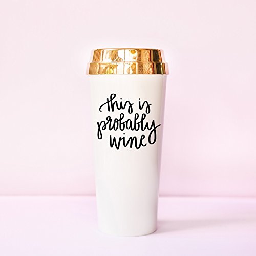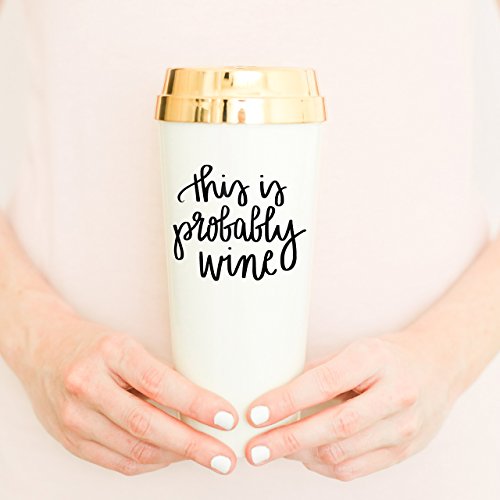 Product Description Our sassy fun This is Probably Wine Travel Mug says it all! Whether it's really wine or your favorite vanilla latte, enjoy your new thermal tumbler featuring a gold foil lid and a hand written design! This tumbler makes a great gift for your boss or bestie! ♥ 16oz Insulated Plastic Travel Mug ♥ Shiny Gold Foil Screw On Lid With Slide Closure ♥ Hand Written Design ♥ BPA, Phthalate, L ead F ree ♥ Hand Wash Do Not Microwave Check out our Rose All Day Pencil Set! 0