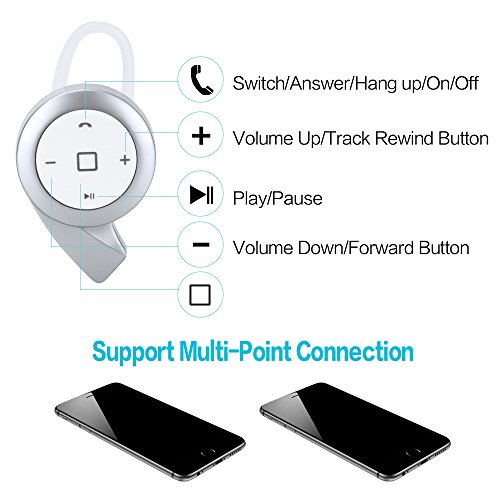 XINGLAN Wireless Bluetooth 4.0 Invisible Earphone Headset Earbud Support Hands-free Calling For iPhone, Samsung, Sony, HTC, LG (White)