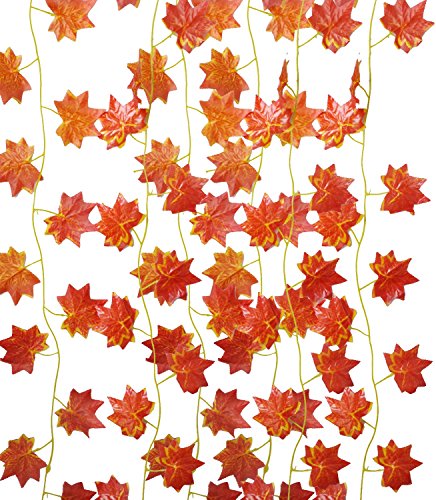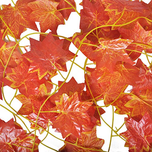 - Comes with 12-Pack lenght:90in Artificial Maple Leaf Garland.Size of each leaves about 7.5*8cm in diameter.
