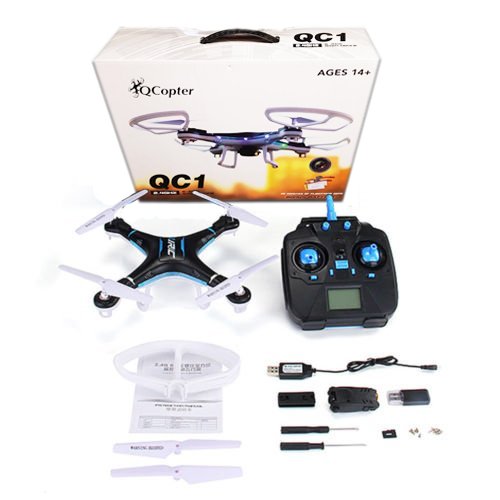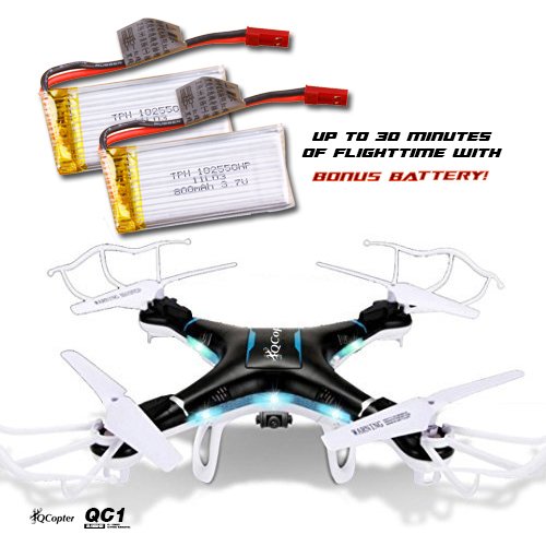 QCOPTER BLACK DRONE QUADCOPTER -AWESOME DRONES WITH CAMERA -BRILLIANT QUADCOPTERS LED LIGHTS -RC DRONE WITH FLIGHT STABILITY -DRONES LONG FLIGHTS OF 30 MINUTES W/BONUS BATTERY -5-STAR CUSTOMER SERVICE
