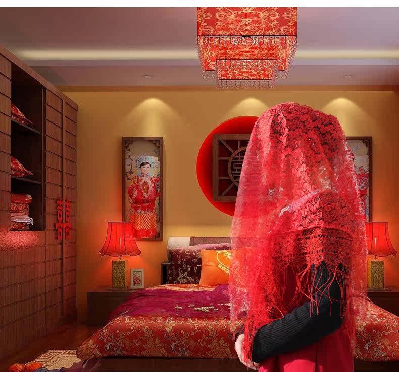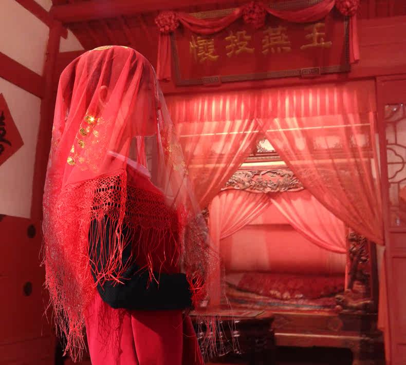 新娘结婚红盖头 喜盖头纱喜帕 蒙头巾 婚庆中式喜字流苏盖头