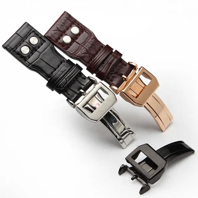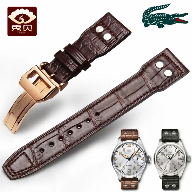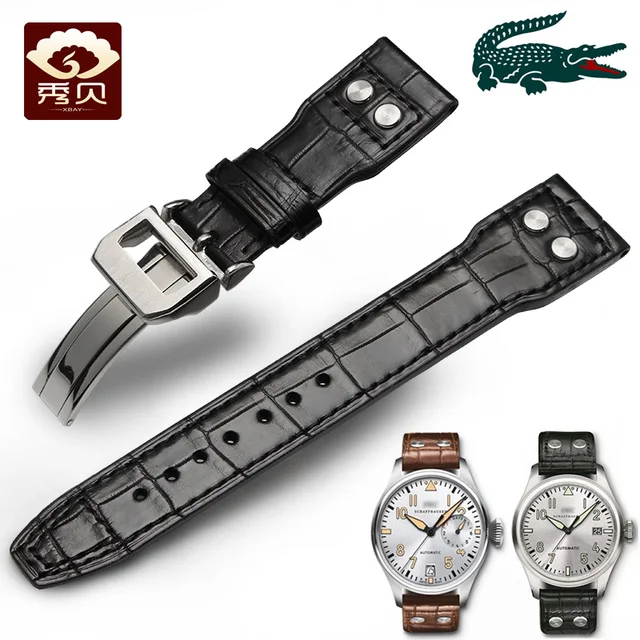 [해외] 최고 악어 가죽 스트랩 악어 피부 손목 블랙 브라운 컬러 접이식 버클 20/21/22 미리메터 대한 PILOT'S/마크 1617