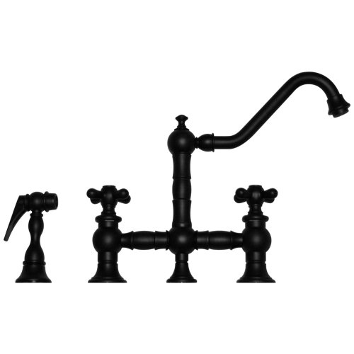 Whitehaus WHKBTCR3-9201-ORB Vintage III Kitchen Bridge Faucet with Long Traditional Swivel Spout, and Matching Side Spray, Oil Rubbed Bronze