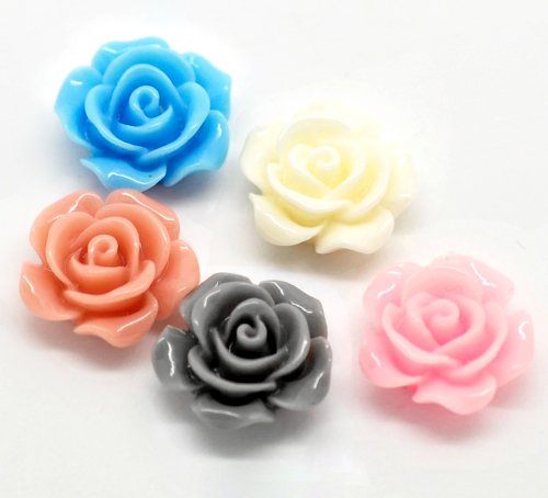 Housweety 100 Mixed Resin Flower Embellishments Jewelry Making Findings 14x6mm(1/2"x1/4")