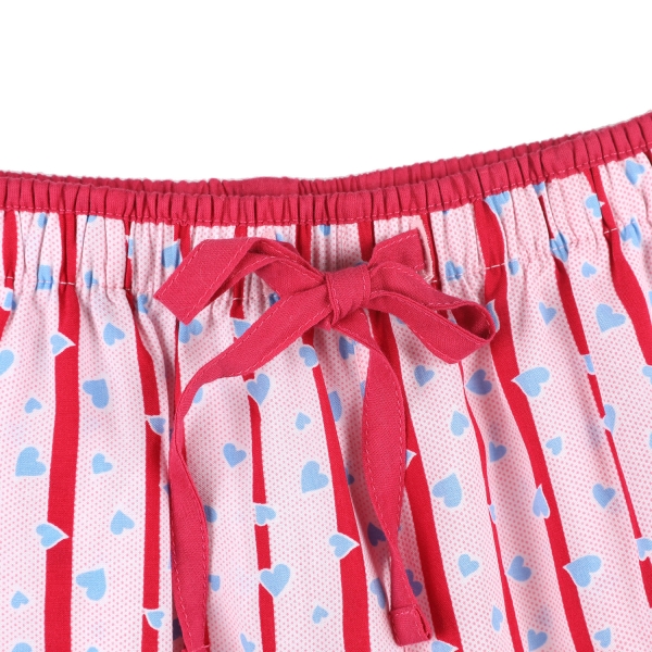 스트라이프에 화사한 하트모티브를 올린 프린트로 남성, 여성 커플로 구성됨.