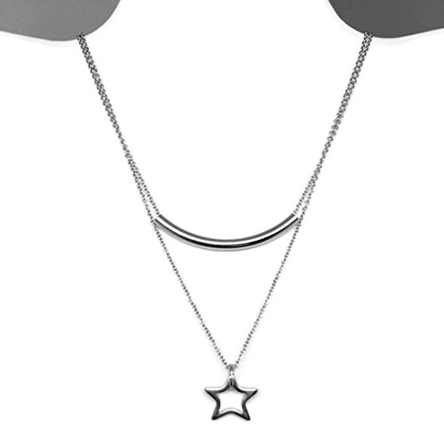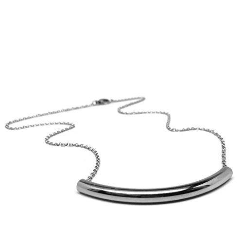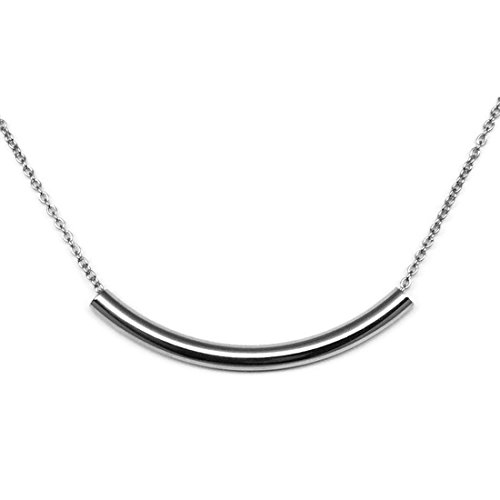 -. Title : 316L Stainless Steel Curved Bar Tube Necklace (16 - 20 Inch Chain)