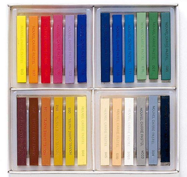 従来のコンテほど固い感じではなく、パステルのなめらかさやソフトでシックなタッチ・軽やかさを持っています。粒子の細かさ・のびの良さが特徴で、重色・混色がよくきくので技法の広さが得られます。角を使っての線描き、面を使っての面描き等に便利な角型です。 |