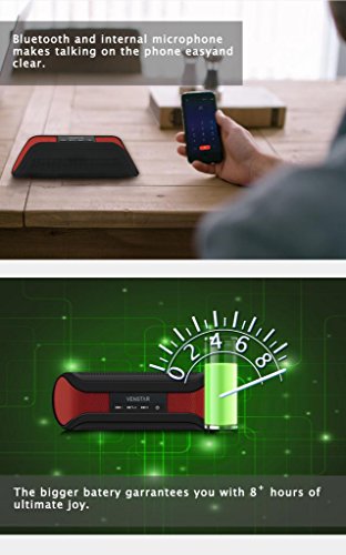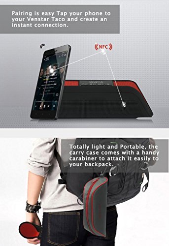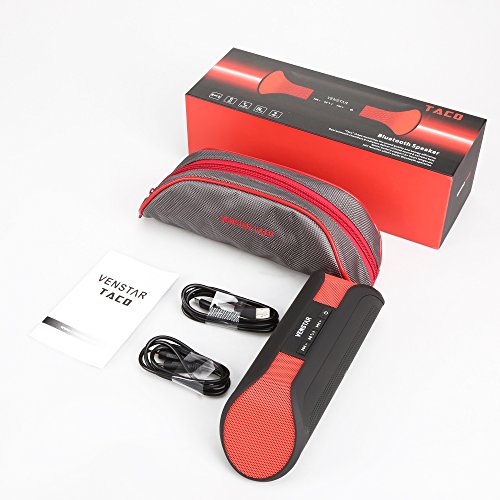 -. Feature : The Wireless Speaker with Bluetooth 3.0 technology and professionally tuned 50mm drivers which delivers dynamic, crystal clear audio / The Taco delivers powerful sound. It"s easy to enjoy soaring highs and deep booming bass, wireless and cord-free,Change Tracks from your phone. Or your laptop or any other Bluetooth-enabled device from up to 30 feet away / Bluetooth and internal microphone makes talking on the phone easy and clear,The bigger batery garrantees you with 8+ hours of ultimate joy / Pairing is easy-- Tap your phone to your Venstar Taco and create an instant connection / Totally light and Portable, the carry case comes with a handy carabiner to attach it easily to your backpack