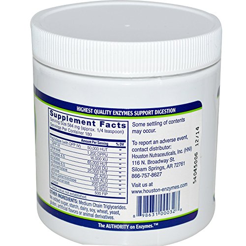 Dr. Houston's Plant Enzyme Highest Quality Broad-Spectrum Enzyme Product for General Digestive Support A Convenient Combination of Houston Enzymes' AFP-Peptizyme, Zyme Prime, and No-Fenol Dietary Supplement Highest Quality Enzymes Support Digestion The Authority on Enzymes Vegetarian and Vegan Formula TriEnza Powder with DPP IV Activity from Houston Enzymes TriEnza aids in the digestion of food proteins (including gluten, casein and soy), carbohydrates, sugars (including lactose), and fats.TriEnza provides a high level of DPP IV (dipeptidyl peptidase IV) activity, which aids in the breakdown of casomorphin (from casein) and gluteomorphin (from gluten). TriEnza may be taken with other Houston Enzymes products. TriEnza was developed by Dr. Devin Houston, Ph.D. enzyme biochemist.Feature