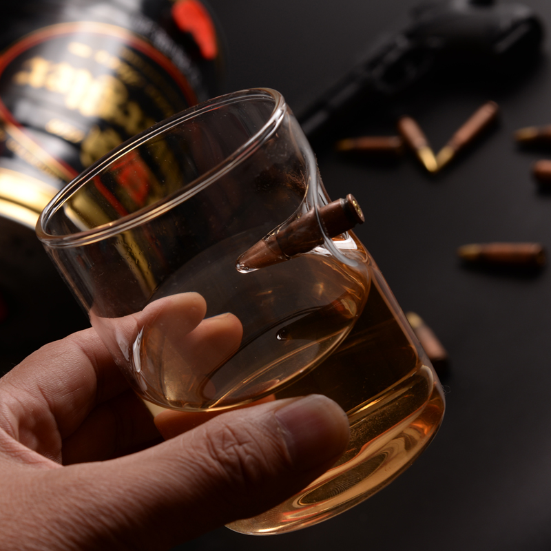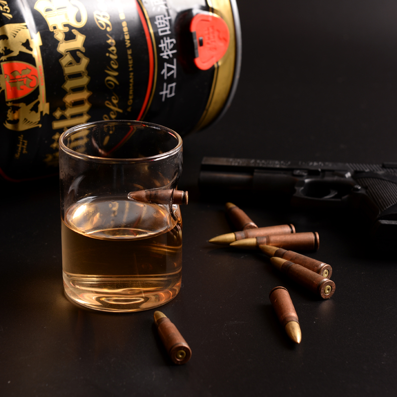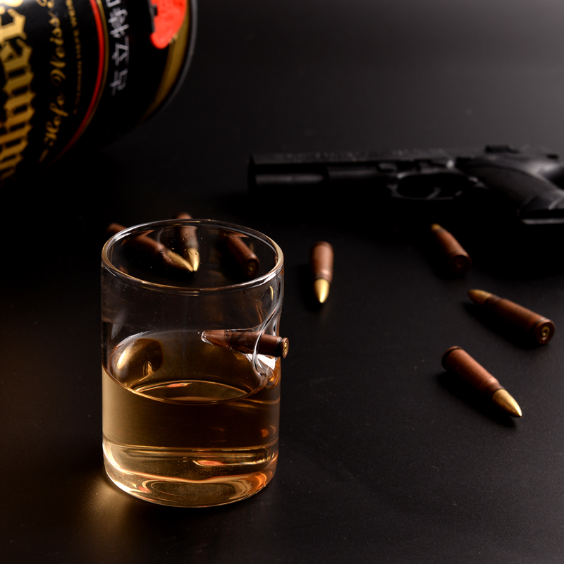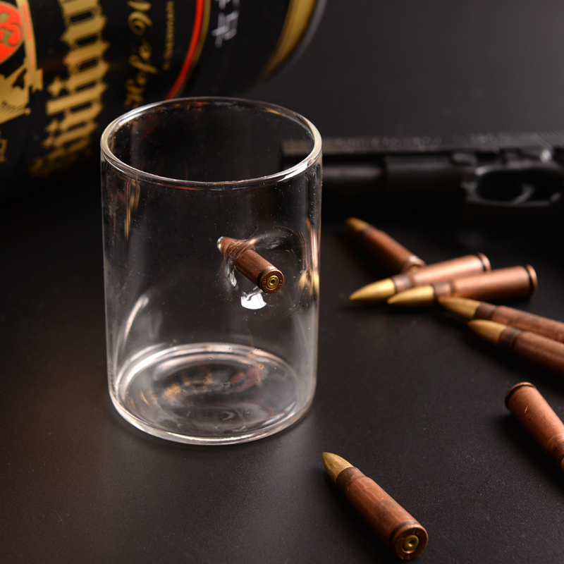 - Hand-blown Shot Glass embedded with a Bullet right here.