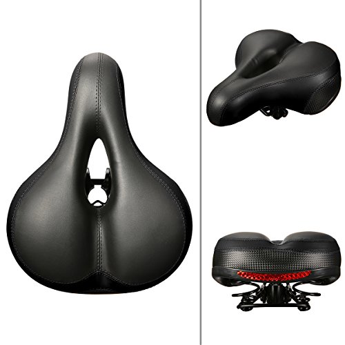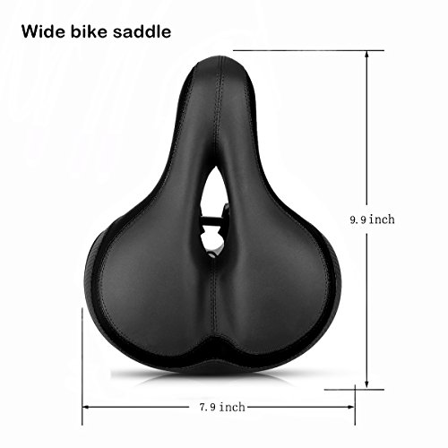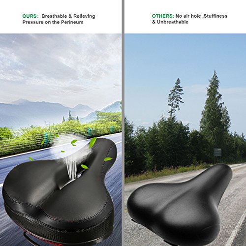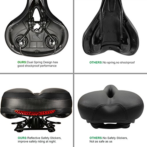 【Dual Spring Design & Comfortable】-- Padded by thicken widened high-density foam and bike seat cushion surface is wear-resistant PVC leather.It is durable and comfortable. Dual spring design in the bottom of cushion , good elasticity, toughness, larger endurance, flexibility, and easy to deal with rough terrain.