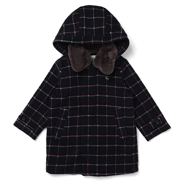 후드형 선염체크 코트입니다. 후드랑 FUR카라가 탈부착이 가능해 보온성과 실용성르 갖춘 아이템으로 여러가지의 스타일링을 제안할 수 있습니다.