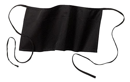 Waist Apron 10" x 20" with 3 Pockets and Cotton Ties, Black