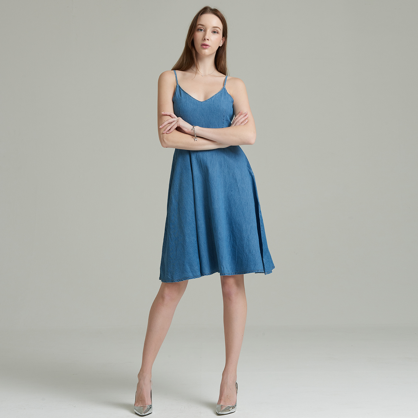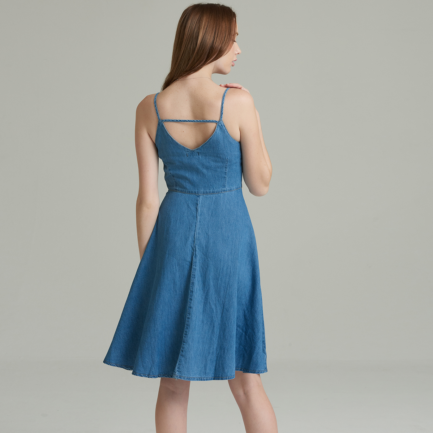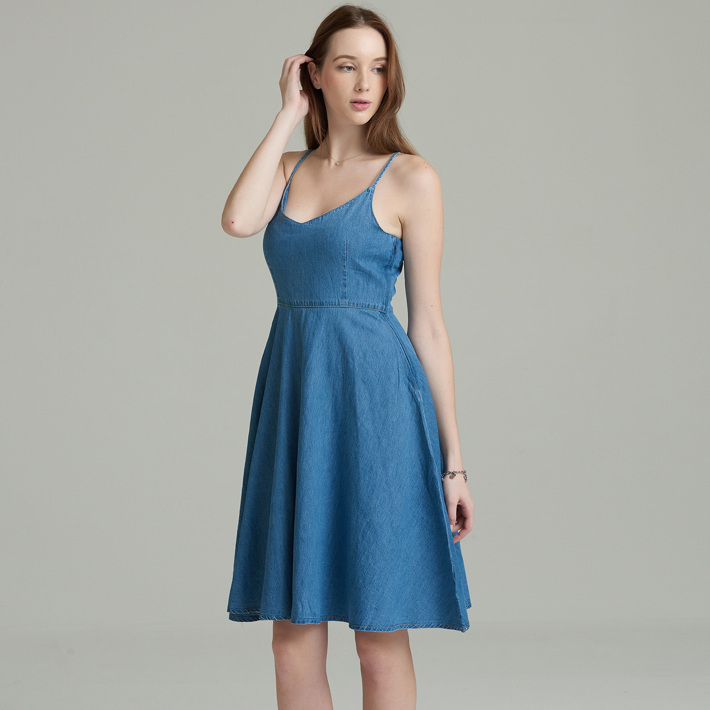 슬림한 플레어 스타일의 데님 원피스입니다.