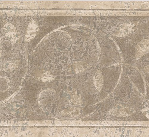 -. Title : Brown Beige Abstract Damask Wallpaper Border Retro Floral Design, Roll 15' x 7''