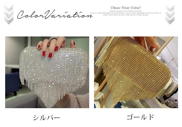 バッグ フリンジ 肩掛け ハンドバッグ ミニ チェーン かばん 斜めがけ ポシェット マザーズバッグ トートバッグ ママバッグ ショルダー 手提げ レディース 鞄 パーティーバッグ 巾着商品詳細■サイズ:高さ:約10cm/横幅:約20cm/厚さ:約5cm/ショルダー(2タイプ)30cm/ 120cm■素材:ラインストーン人気の小さめバッグは内ポケットもついており見た目よりも収納力があります。普段使いからお出かけやパーティなどに使える上品なデザインです。★備考●測り位置や測り方によって2-4cm誤差があり、予めご了承してください。●お品物の色合いは撮影環境、PCパソコン画面の表示環境により、若干異なる場合がございますので、予めご了承してください。●製造上、留め口、金具(マグネット)部分に小さいキズがある場合があります、予めご了承してください。●素材のため、お届けの際に臭いがある場合がございますが、数日干していただけますと軽減します。●通常8~10日間お届けます。