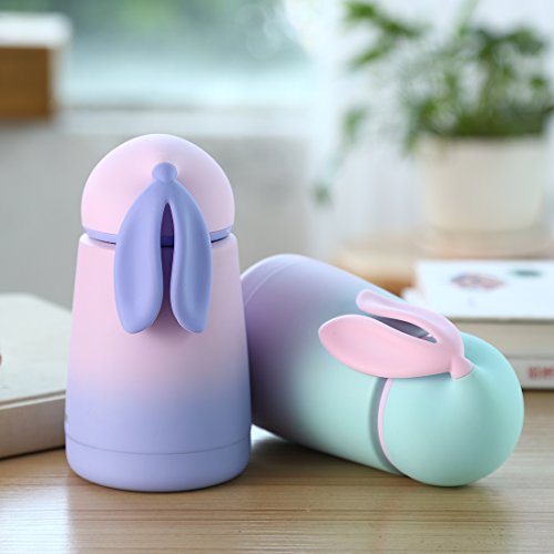 ONEISALL Gradient Rabbit Stainless Steel Travel Mug Thermos,Cute Insulated Water Bottle,Mini Size Coffee Tumbler&Vacuum Flask,Leak-poof Flask For Kids&Adult,300ML (Blue)