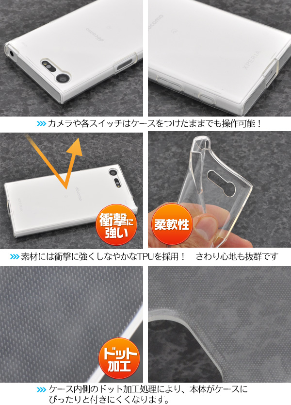 しなやかで衝撃に強い!Xperia X Compact(SO-02J)用ソフトクリアケース