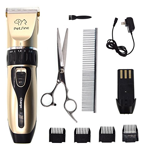 Rechargeable Cordless Cat Dog Grooming Clippers - Electric Pet Grooming kit Set Tools for House Animals, Low Noise Dog Clippers with Comb Guides by PetsInc