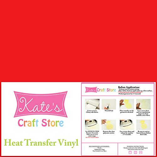 12" x 15" 5-pack of RED Heat Transfer Vinyl Sheets (HTV) for Silhouette Cameo, Provo Cricut, and More