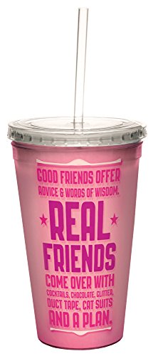 Tree-Free Greetings 35486 Angi and Silas Real Friends Double-Walled Cool Cup with Reusable Straw, 16-Ounce