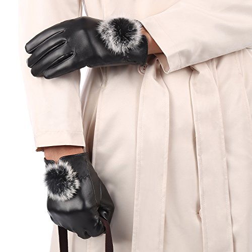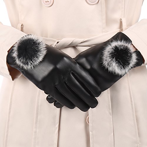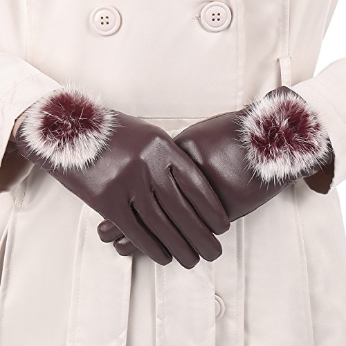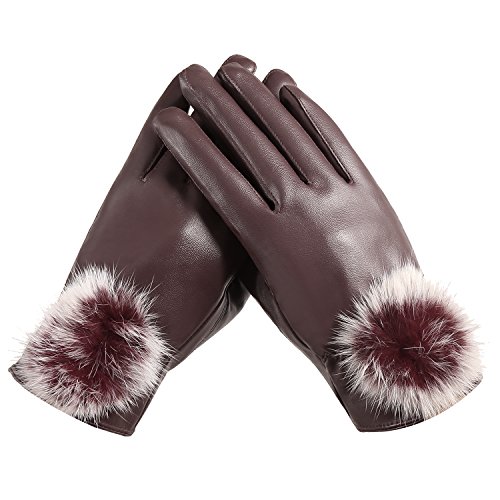 SHINE Women's Fashion Warm Leather Gloves