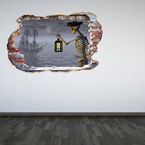60 Second Makeover Limited Full Colour Skeleton Pirate Ship Smashed Wall 3D Effect Under the Ocean Sea Bedroom Wall Sticker Decal Kids Bedroom Decoration Regular