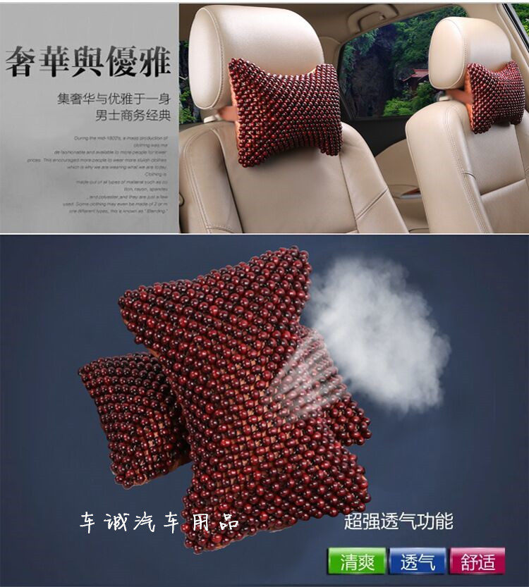 ????Car headrest neck pillow car by summer mahogany beads pillow pillow automotive supplies car seat bones