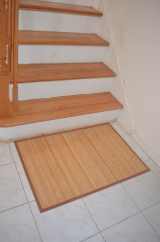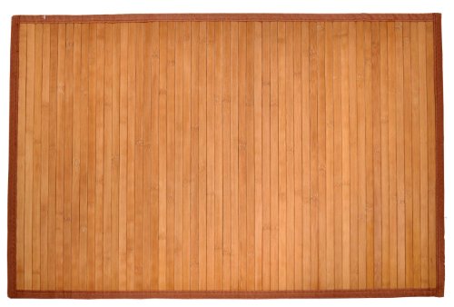 Add a touch of elegance and oriental flair to any bedroom or office with this bamboo rug. Bamboo is environmentally friendly. 0.6" width of bamboo strips are woven together using a complex weaving technique. Each bamboo rug is backed with a non-slip surface and bordered on all sides with polyester cloth. This bamboo rug is carbonized with a natural brown color. Size: 24" x 36"