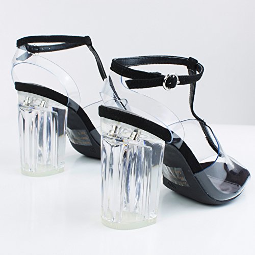 Binding : Apparel Product Description Name - Natalie01 Brand: Wild Diva Colors Available: Natural (beige), Blue, Black Features: These futuristic dress sandal features a perspex acrylic block heel, t-strap, lucite/transparent straps and adjustable buckle. Customers report they need a full size bigger. Occasion: Clubwear Shoe Type: Heels - Open Toe Shoe Style: Open Toe Inner Lining: synthetic Heel Height In Inches - 4 Heel Style - Block Toe Style - open-toe Platform Height In Inches - .25" Shaft Height In Inches - Circumference Opening - n/a Strap Type - ankle-strap Sole - manmade All Man Made Material 0