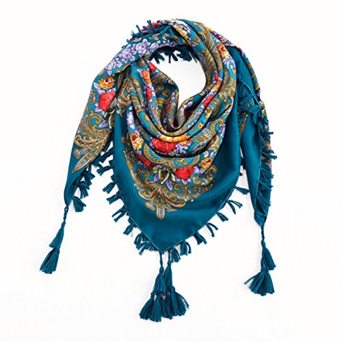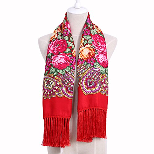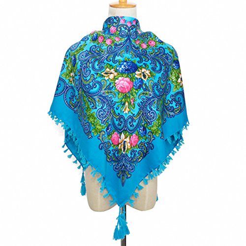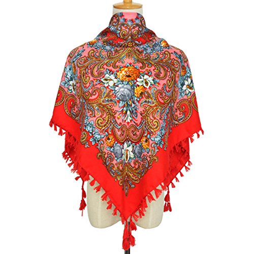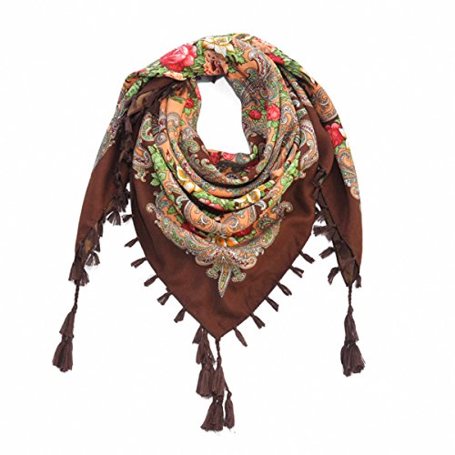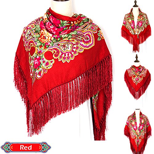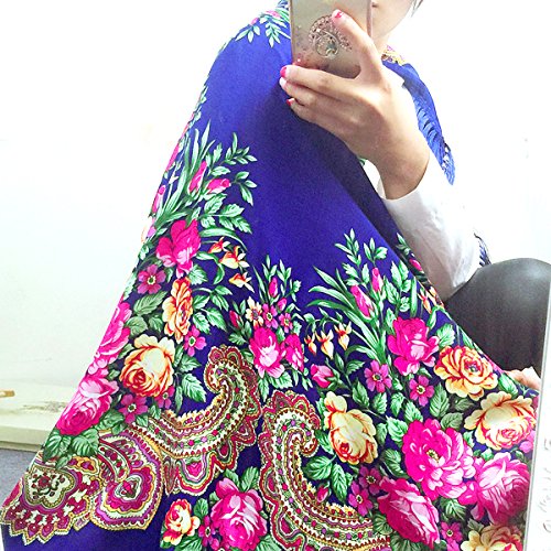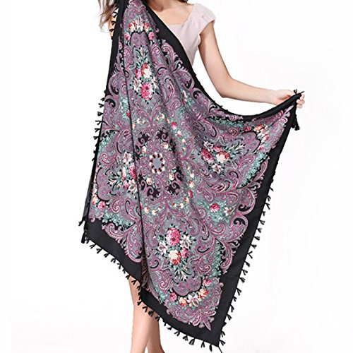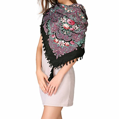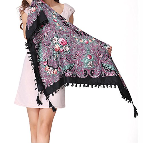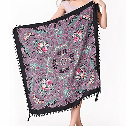 | (Pinky Kiss)/Accessories/Cold Weather Accessories/DIRECT FROM USA/Women Scarf Trendy Fringe Big Square Long Blanket Warm Floral Scarves Shawl |