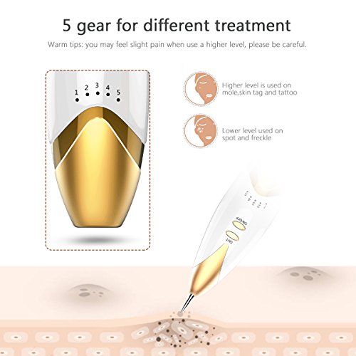 5 gears for different treatment. Lower level is used on spot and freckle; higher level is used on mole, skin tag and tattoo. Much safer, high efficiency, compact and portable.