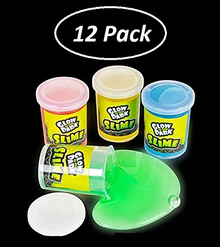 Glow In The Dark Slime - 12 Pack - Assorted Neon Colors- Great Toy For Any Child Favor, Gift, Birthday- By KidscoTurn the lights down and this spectacular slime will glow in the dark!