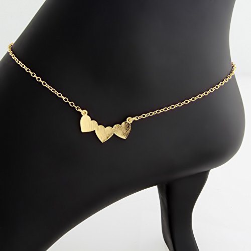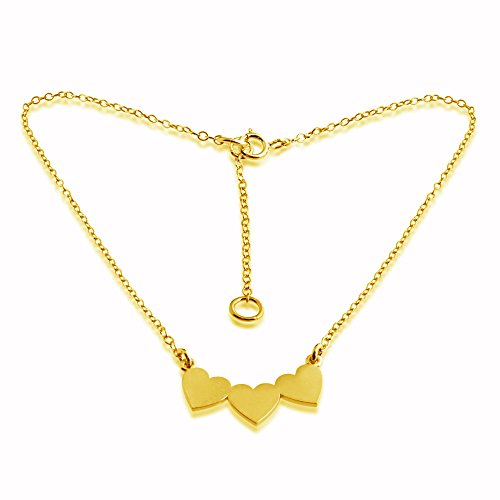 -. Title : Azaggi Gold Plated Sterling Silver Handcrafted 3 Solid Hearts Anklet