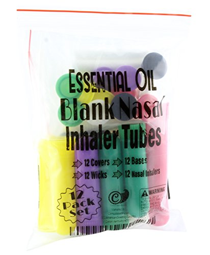 ✓12 COMPLETE INHALERS - 12 high quality blank nasal inhaler tubes for use with essential oils (Including 12 unscented wicks, 12 inhalers, 12 covers, and 12 caps)