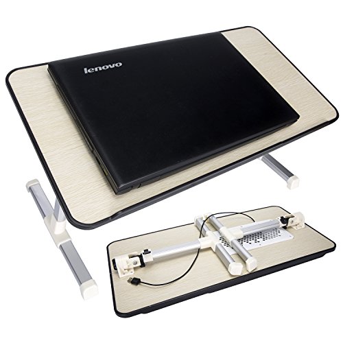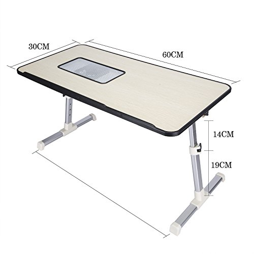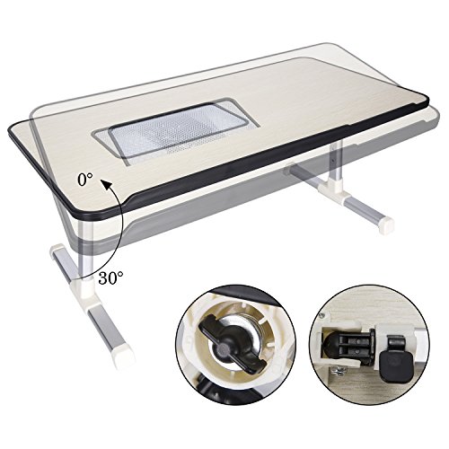 -. Feature : LIGHT BUT STURDY - It can fold flat for convenient storage, is light enough to carry around, made of 100% high quality engineered wood which is environmentally friendly, strong and durable. / SILENT BUILT IN FANS - cools down your laptop. Powered by USB cord.Specially designed joint locking design to fit virtually any angles and positions. / LARGE SURFACE - The size of the tabletop is 600x330x9mm(23.62"x12.99"x0.35"), it fits for 17" or larger laptop with space for a mouse. / EASY TO USE - Two auto-lock buttons on each side easily enable quick changes in height (adjustable from 22cm-32cm) in addition two clamps may be used to adjust the surface angle (from 0-36°). / WE KNOW YOU'LL love our foldable table, but if for any reason you're not 100% satisfied, let us know and we'll do everything to help you.