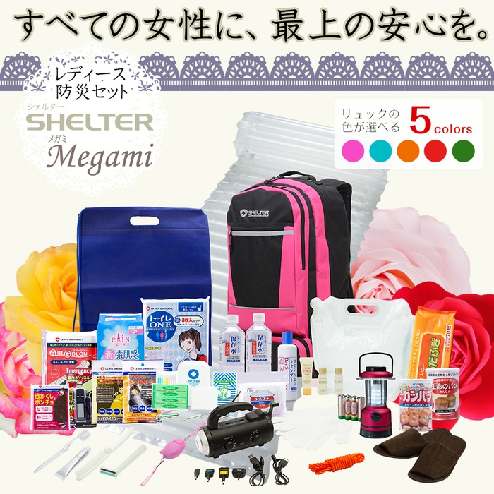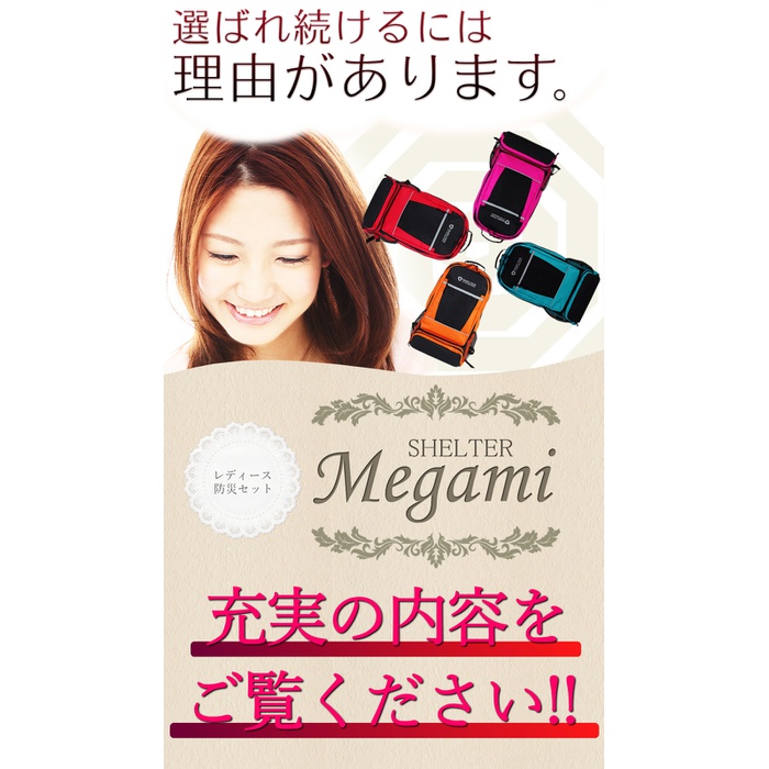 원본상품명: ポイント3倍レディ?ス防災セット MEGAMI 女性用防災士と女性スタッフが監修した防災グッズ?納 女性用品が入った安心の防災セット 防災セット 防災グッズ 女性用 一人用 非常用持ちだし袋 避難袋 <防災セット防災グッズ>