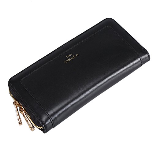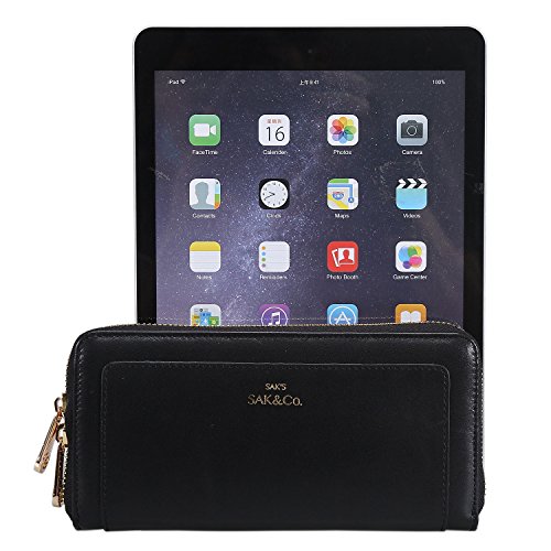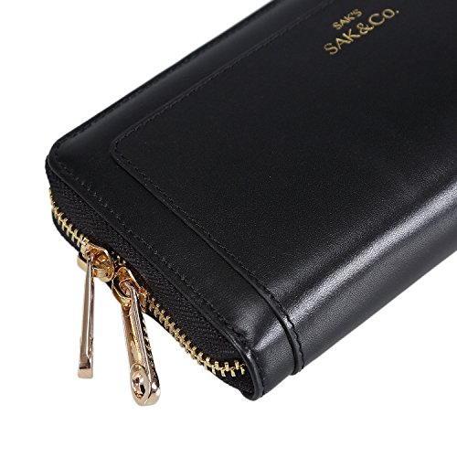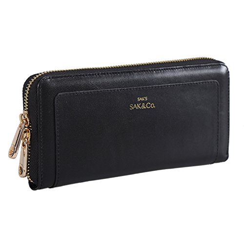-. Brand : Sakco -. Color : black -. Department : womens -. Feature : 100% Leather / Metal zipper closure / Double secure add-on wrist-chain for easy to carry anywhere you want / The interior is leather and cloth in the same shade. There are 8 credit card slots, 2 currency side compartments, 2 main compartments, and 1 inner zipper compartment for loose change / Dimension L7.4"xW3.7"xH1" -. Model : L515 -. PackageQuantity : 1 -. ProductGroup : Shoes -. ProductTypeName : HANDBAG -. Title : Sak&Co Women's Leather Wristlets Wallets Purse Small Double-zipper Clutch with Phone Holder/Credit Cards Slot/Cash Pocket- Fit iPhone 6 Plus/Samsung Note 5