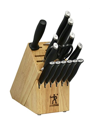 J.A. Henkel's International Forged Razor 15pc Knife Block Set- Consists of: 3" Paring Knife, 5" Serrated Utility Knife, 5.5" Boning Knife, 6" Utility, 7" Santoku, 8" Chef's Knife, 6 Steak Knives, Sharpening Steel, Kitchen Shears, Wood Block